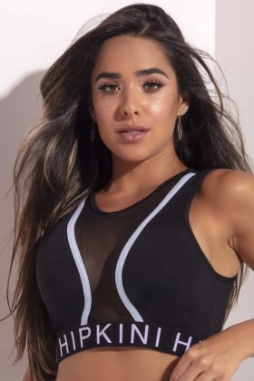 Black top with tulle on the front. Blue elastic detail on the front. Composition: 90% polyamide 10% elastane. Lining: 90% polyamide 10% elastane. Ilustrative Photo. All rights reserved. Shine Collection.